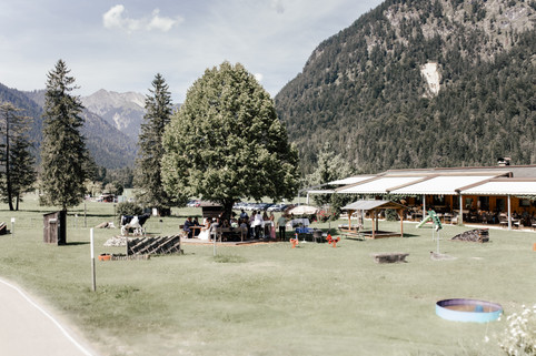 In der charmanten Langlaufstube in Pertisau wartete eine liebevoll vorbereitete Agape. Bei Bergblick und familiärer Atmosphäre wurde gemeinsam angestoßen, gelacht und gefeiert. Genau so, wie sich Mario und Sabrina ihren Tag gewünscht hatten: persönlich, entspannt und mit den Menschen, die ihnen am wichtigsten sind.